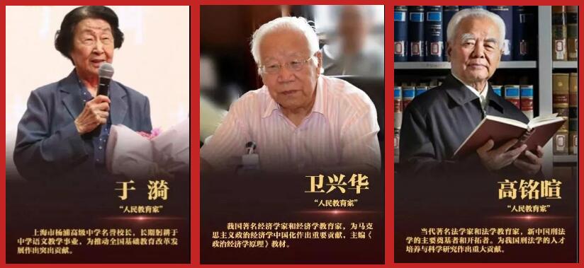 “授予國家勛章和國家榮譽稱號,是對作出突出貢獻的杰出人士授予的國家最高榮譽。”于漪、高銘暄、衛(wèi)興華被授予“人民教育家”國家榮譽稱號。