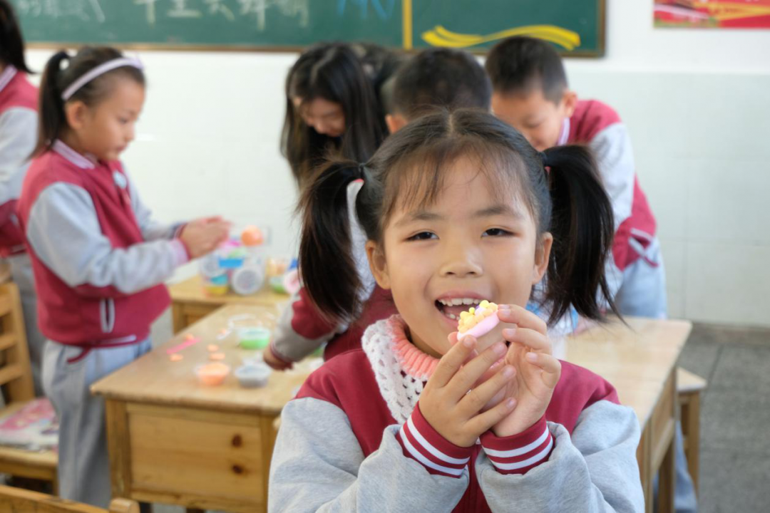 在兩年的支教時(shí)間里,面對(duì)條件的限制,我想盡辦法讓孩子們的生活更加豐富多彩。美術(shù)課上,帶著孩子們一起裝扮教室;體育課上,尋找有趣的活動(dòng)和學(xué)生一起玩耍;大課間時(shí),和孩子們一起跳舞;到了元旦,我買(mǎi)來(lái)蛋糕和孩子們一起慶祝;遇到兒童節(jié),我和孩子們一起排練節(jié)目......我努力將儀式感帶給孩子,并在有限的時(shí)空里,尋找更多的樂(lè)趣。
