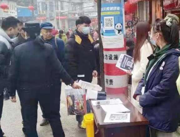 ▲ 走到街頭、路口、超市等地方,發(fā)放傳單,開展健康碼、行程碼等防疫宣傳咨詢工作。